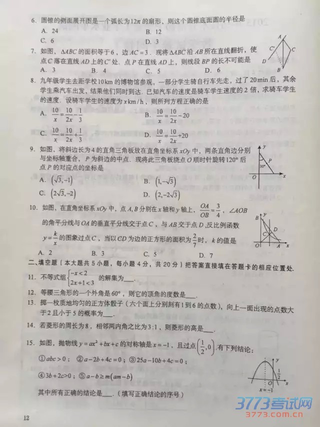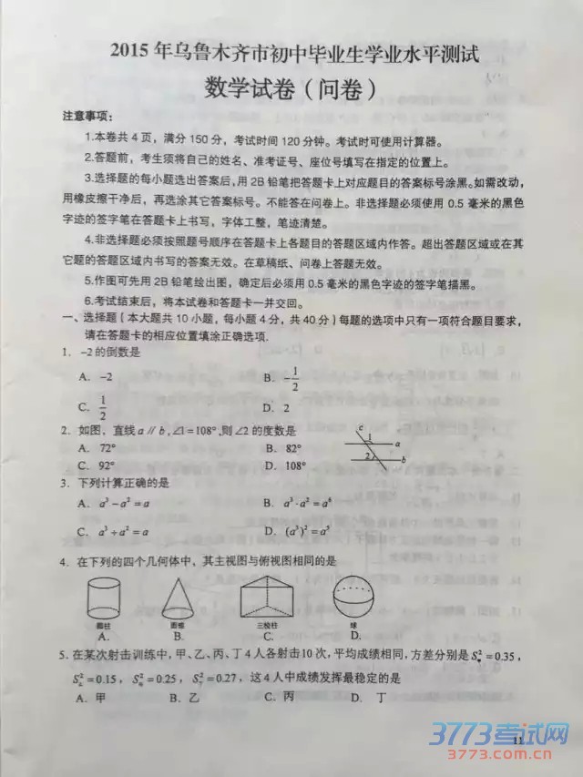公布新疆中考试题、答案和中考作文。祝各位考生都能取得好的成绩。2015年新疆中考数学学试题及答案(图片版):