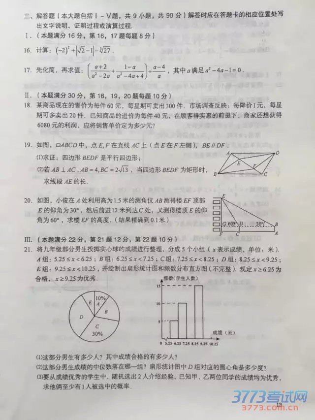 2015乌鲁木齐中考政治历史试卷及答案评分标