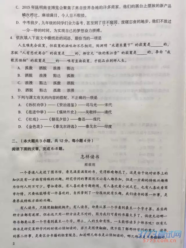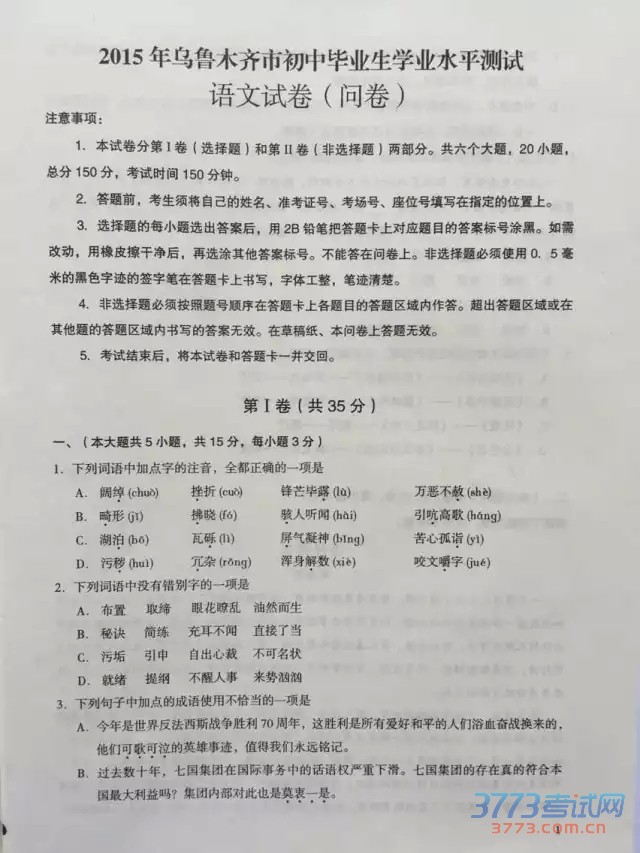公布新疆中考试题、答案和中考作文。祝各位考生都能取得好的成绩。2015年新疆中考语文试题及答案(图片版):