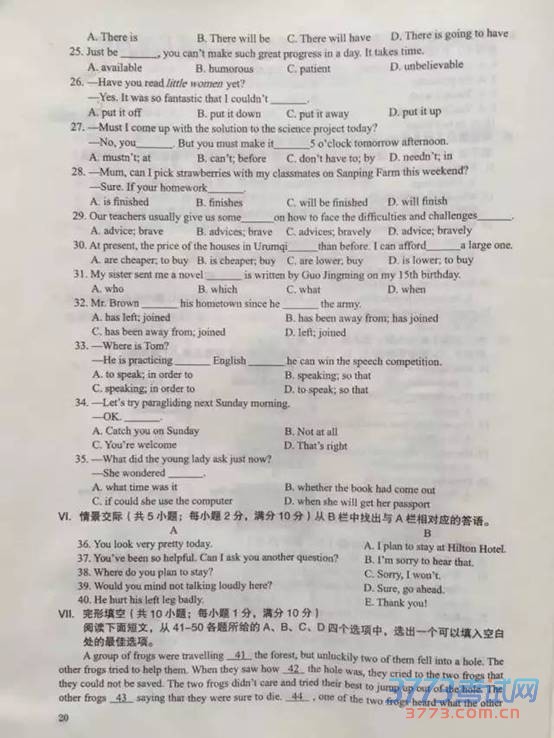 2015乌鲁木齐中考语文试卷及答案评分标准