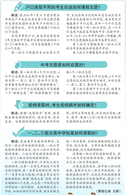 都市消费晨报讯(记者王新)5月26日,乌鲁木齐市教育局召开2016年高中招生政策解读会议,就中考期间以及中考过后师生及家长关心的难点、热点问题进行了政策解读。