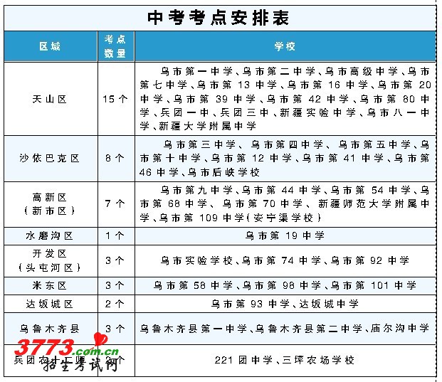 新疆都市报讯(记者周坤报道)高考结束没多久,6月26日至28日,乌鲁木齐市2.7万余名学子将在44个考点、1109个考场迎战中考。与往年相比,今年中考时间有所变动,下午考试时间将提前半小时进行。