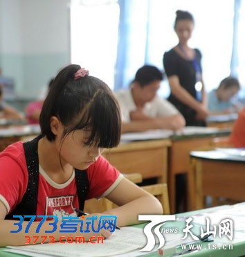 资料图片:2012年乌鲁木齐中考。考生们在考场里认真答题。