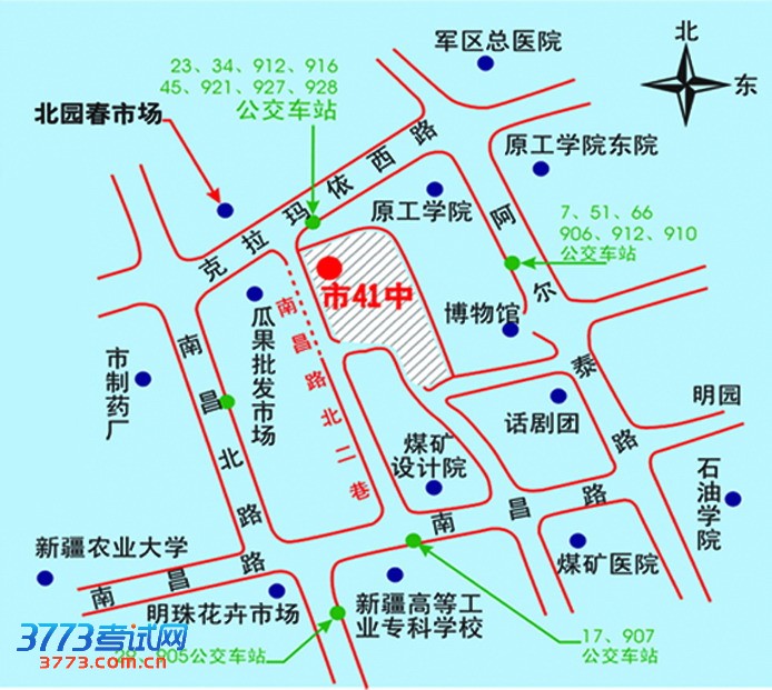 乘车线路1:乘17路、29路、304路、905路、907路 煤校站 下车 乘车线路2:乘7路、51路、66路、906路、910路、912路 博物馆站 下车