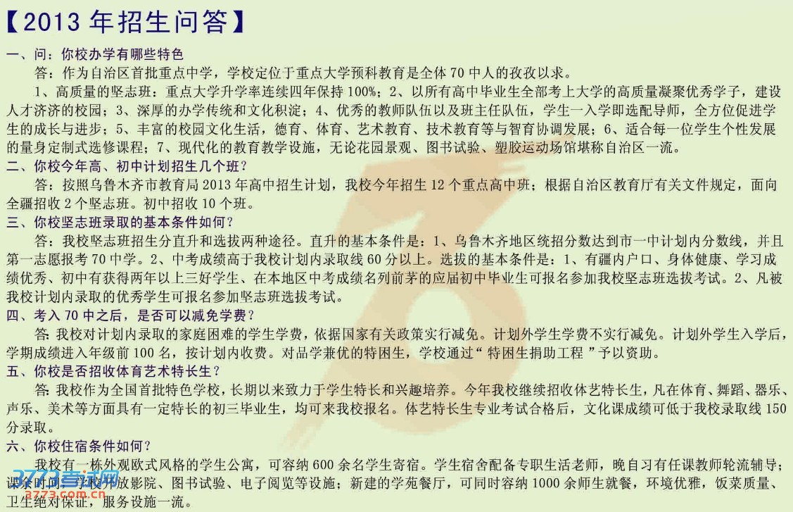 乌鲁木齐一中2013年美术特长生考试成绩查询