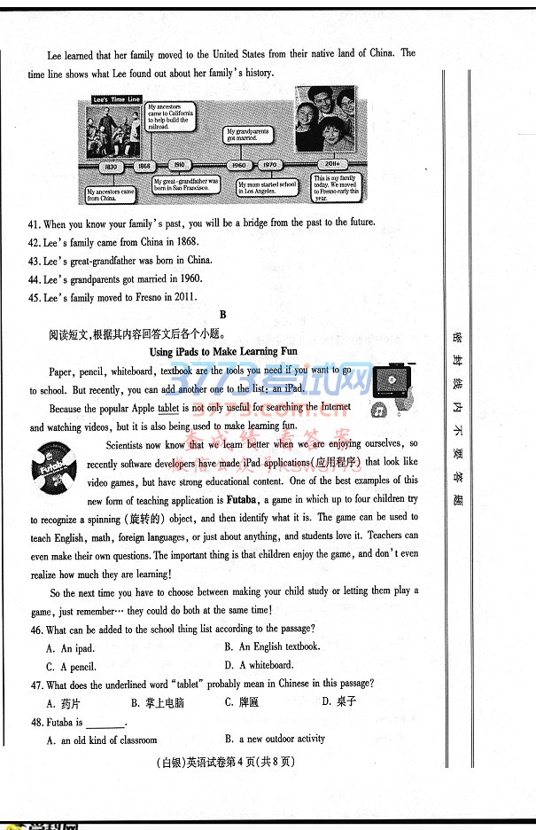 2017武威白银定西平凉酒泉临夏张掖中考英语试题及答案