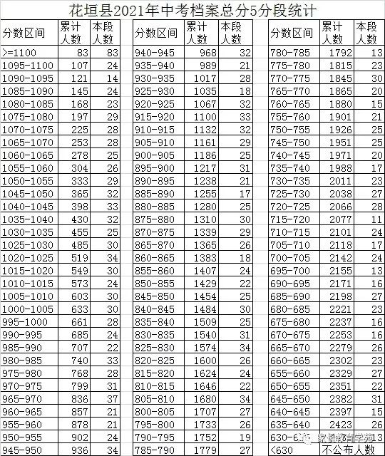 2021年湖南湘西花垣县中考成绩5分段统计表
