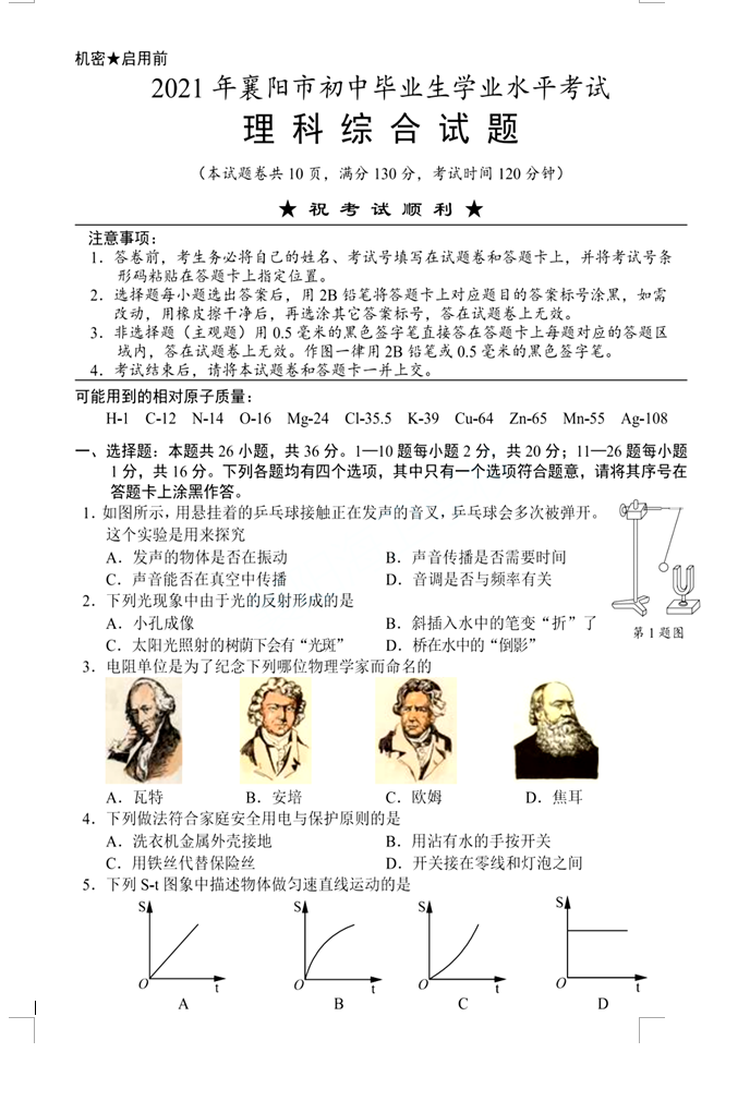 3773考试网 - 中考 - 中考试题答案 - 湖北中考 - 襄阳中考 - 正文