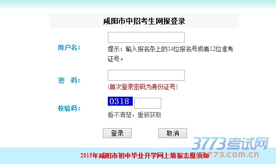 2015年咸阳市初中毕业升学网上填报志愿须知