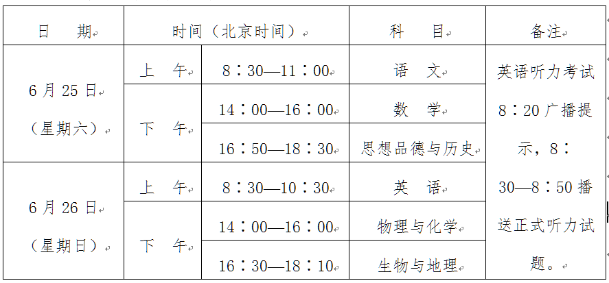 考试方式、科目设置及时间安排