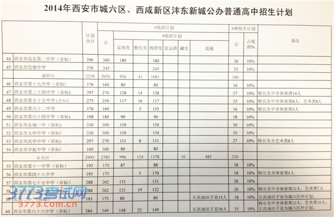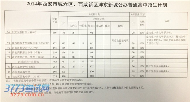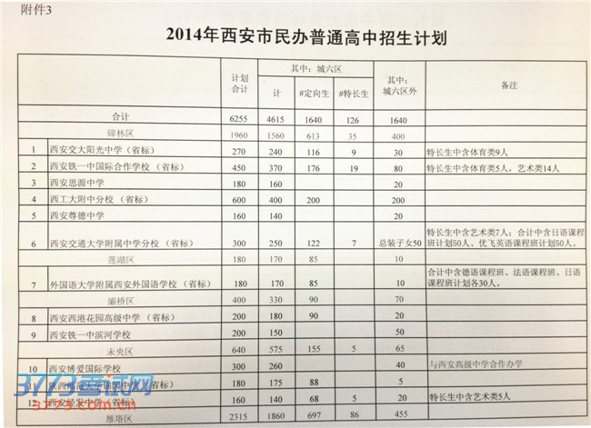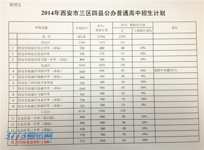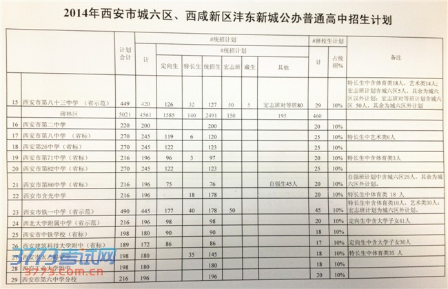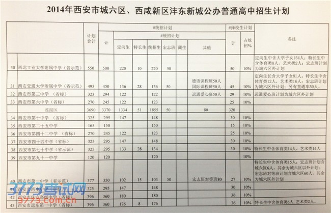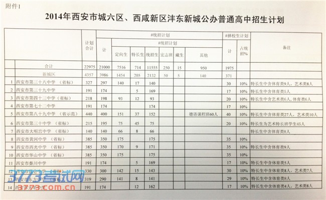 附件:1. 2014年西安市城六区、西咸新区沣东新城公办普通高中招生计划