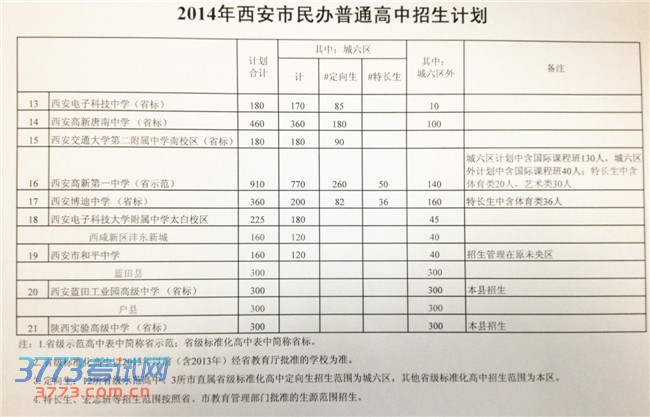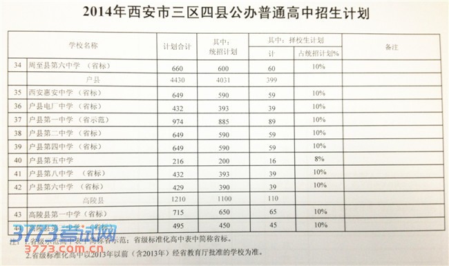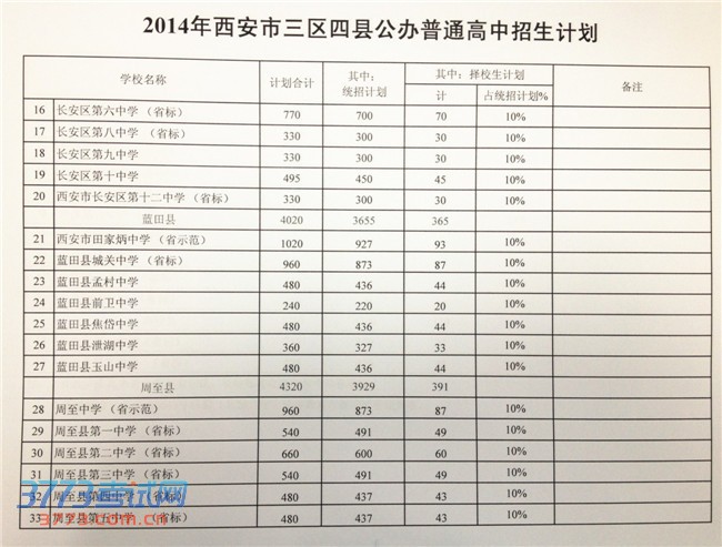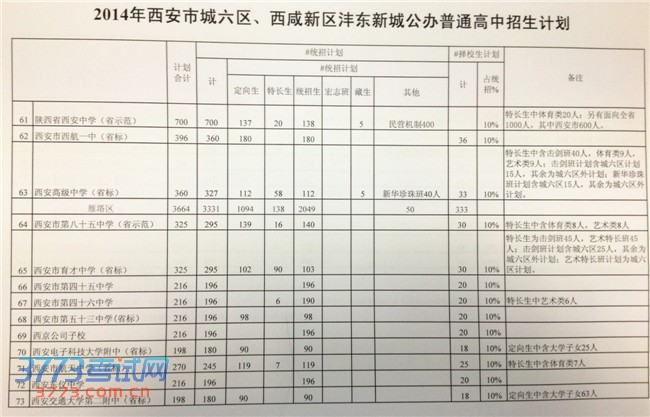 西安市教育局关于下达2014年普通高中分校招生计划的通知