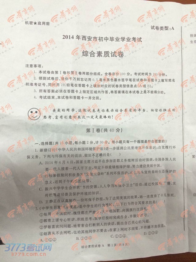 3773考试网 - 中考网 - 各省中考 - 陕西中考 - 西安中考 - 正文
