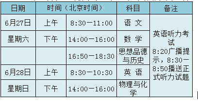 2015年陕西省统一的初中毕业学业考试时间为6月27日至28日。中考各科具体考试时间如下: