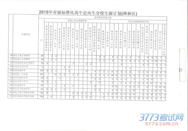 西安市教育局2015年城六区及西咸新区沣东新城省级标准化 高中定向生分校生源计划的通知