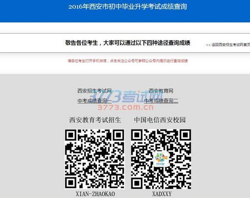 分别是登陆西安招生考试网(点击进入)、西安教育网(点击进入),或扫描图片上二维码关注相关微信账号进行查询。