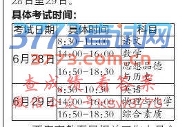 统考科目为:语文、数学、英语、物理与化学、思想品德与历史、综合素质考试。统一考试时间为2017年6月28日至29日。
