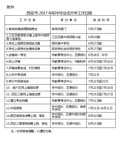 现将《西安市2017年高中阶段学校招生录取工作方案》印发你们,请遵照执行。