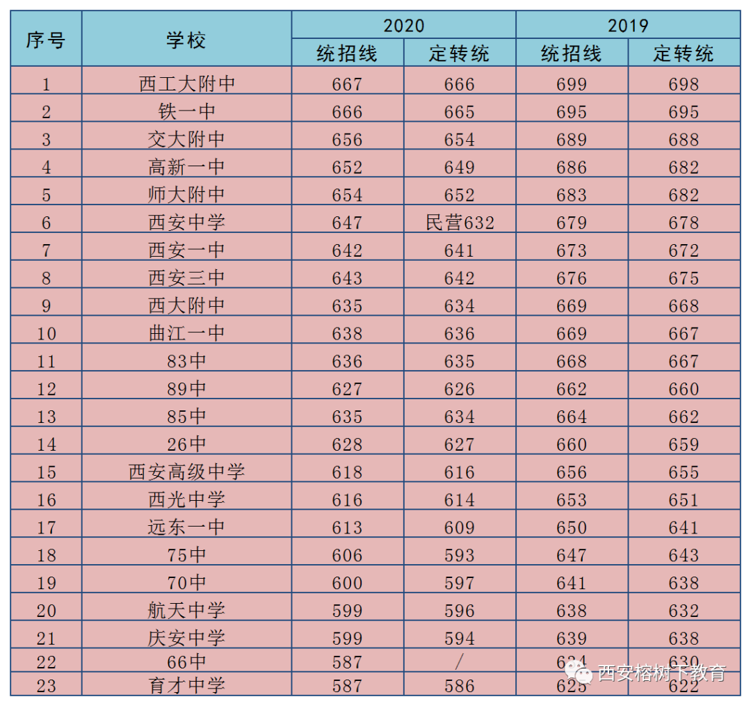 2020西安中考第一批次23所高中录取线出炉