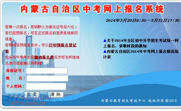 2014锡林郭勒中考网上报名系统入口