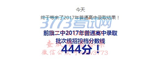前旗二中2017年普通高中录取批次统招投档分数线 444分!