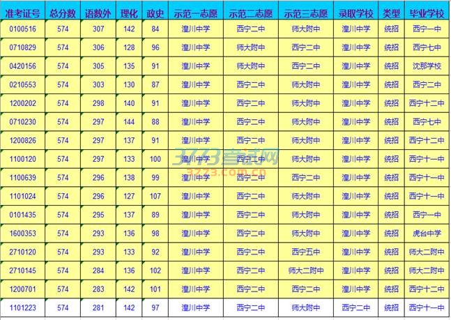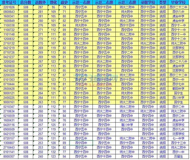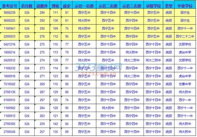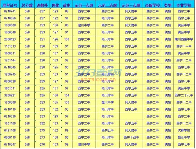 2016西宁市总寨中学分数线 总寨中学录取分数