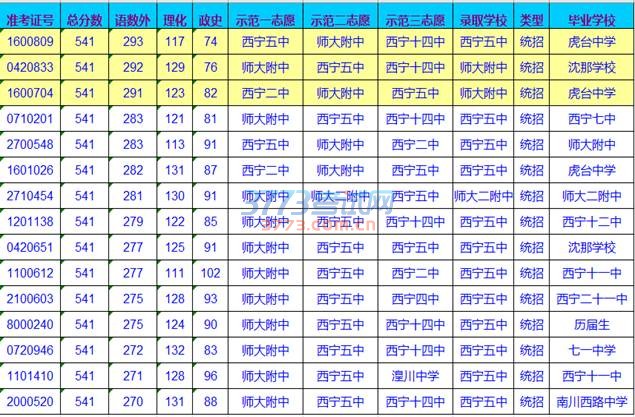 2016西宁沈那中学分数线 西宁沈那中学录取分