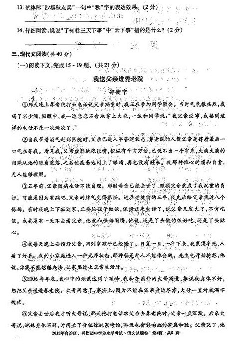 2012年新疆自治区兵团中考考试汉语和英语学科听力考试说明