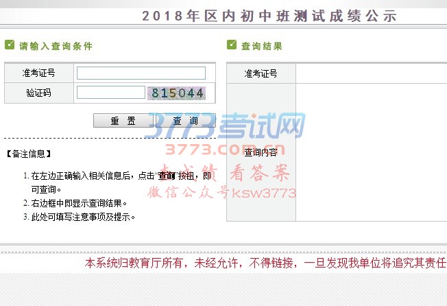 2018新疆内初班测试成绩查询入口公布 2018年区内初中班测试成绩公示 准考证号 验证码 重 置 查 询