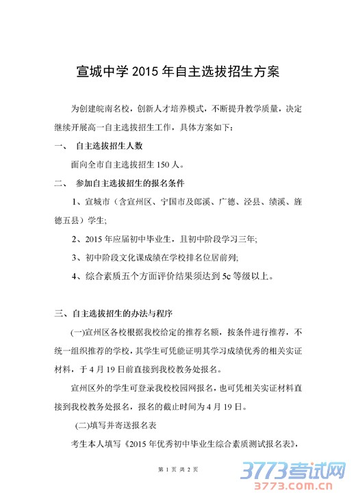 3773考试网 - 中考网 - 各省中考 - 安徽中考 - 宣城中考 - 正文