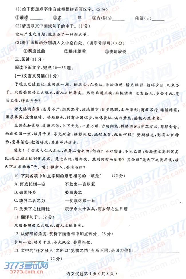 2014烟台中考时间6月13日至14日 芝罘莱山人工评卷
