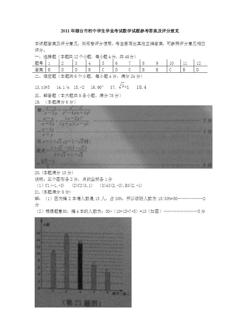山东烟台2011中考数学试题及答案