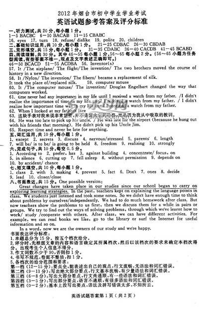 2012年烟台中考英语试题答案发布