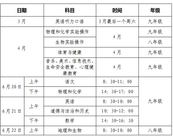 ◾2019年八年级地理和生物科目考试时间安排在6月22日下午。