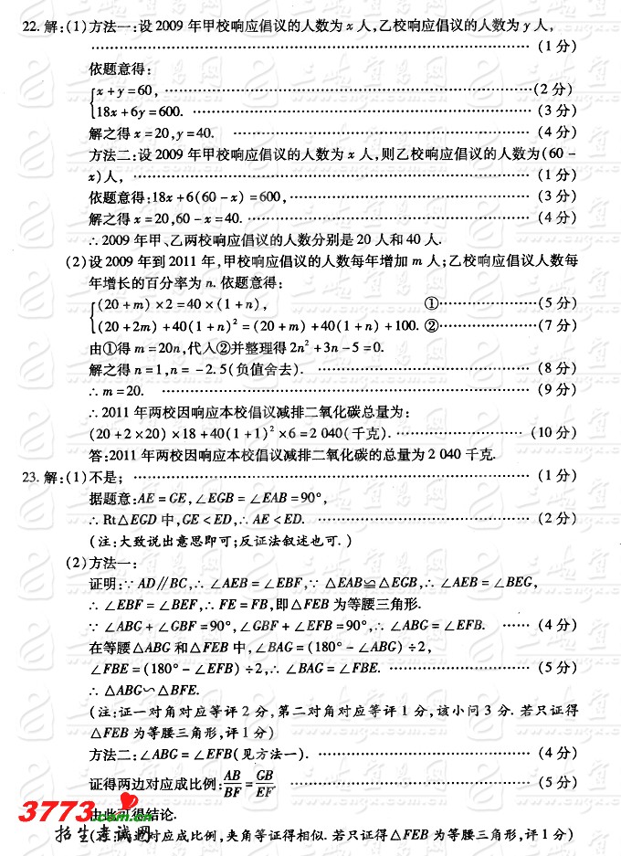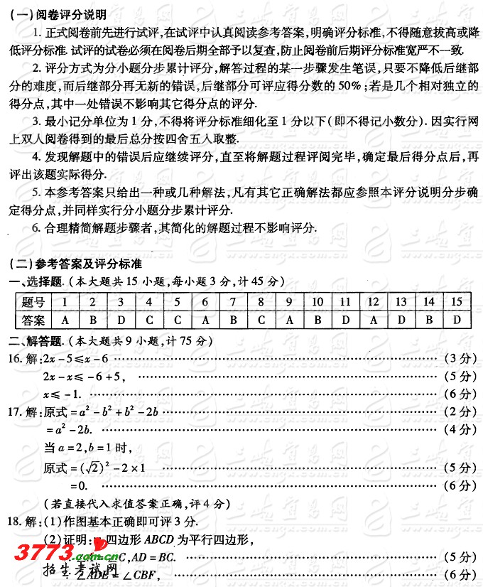 数学试题及答案 初中毕业生学业考试参考答案