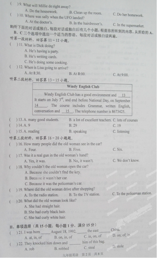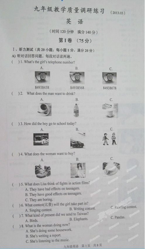 2013年淮安中考调研英语试题及答案