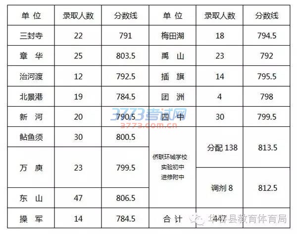 2.分配录取:应录442人,实录447人(末名同分增加录取5人)。