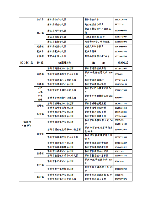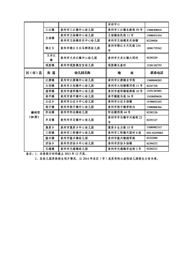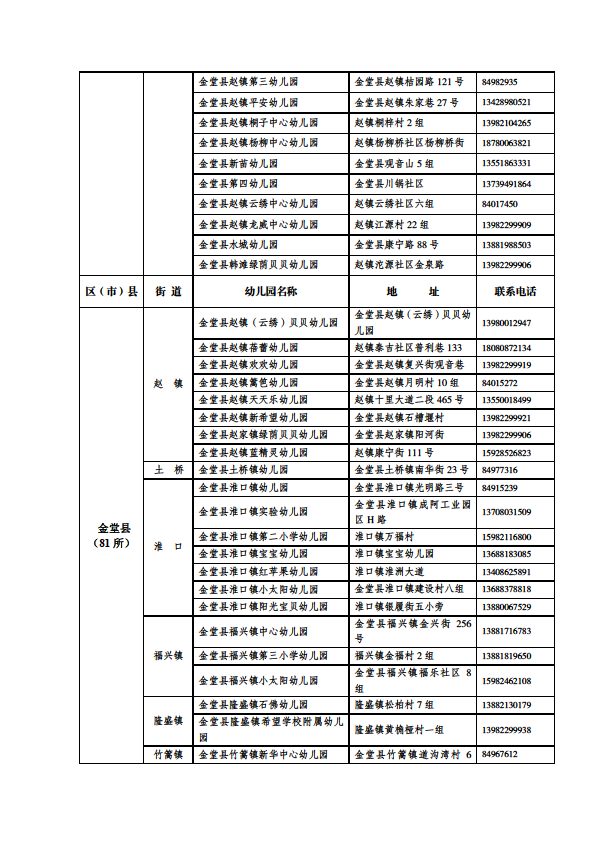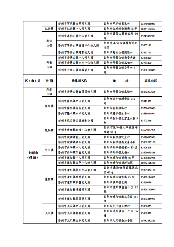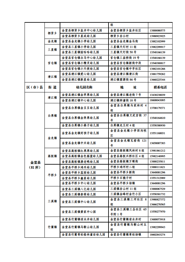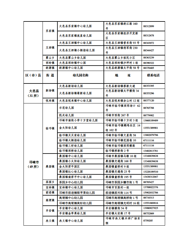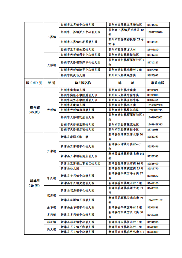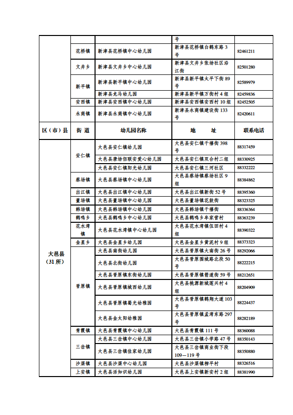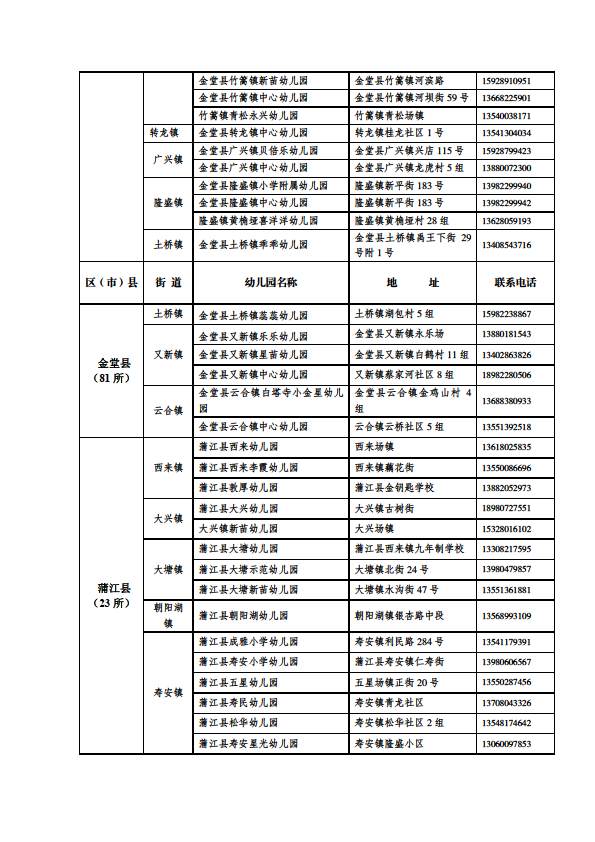 成都市公益性幼儿园一览表