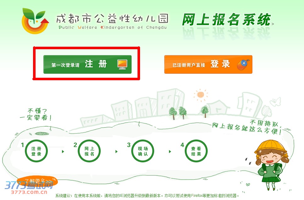 凡是自愿报名就读我市就读公益性幼儿园小班,正住户籍在我市五城区和高新区,且在2010年9月1日—2011年8月31日间出生的幼儿,均可注册使用成都市公益性幼儿园网上报名系统。