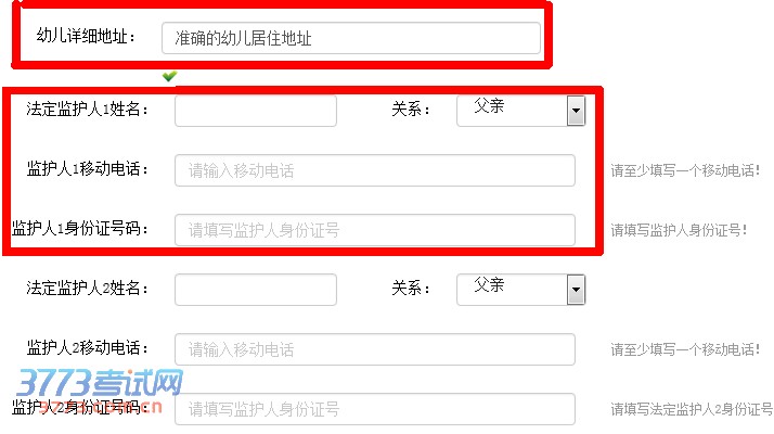 4、监护人请至少填写一个,监护人与幼儿关系,监护人身份证号以及常用手机号。