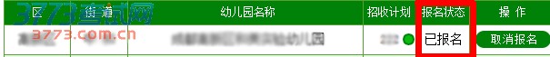 4、报名后原表格中的幼儿园报名状态将显示为“已报名”,表明报名成功。如果想要取消报名,可直接点击“取消报名”。