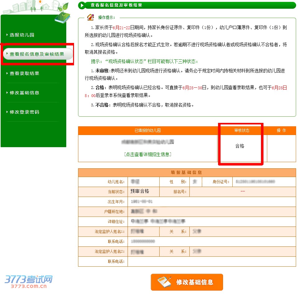 报名后家长可通过“查看报名信息及审核结果”查看报名审核结果。