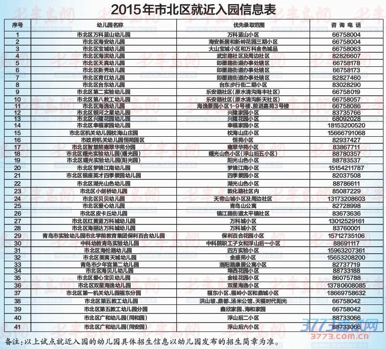 2015青岛幼儿园招生方案公布 市区90所幼儿园