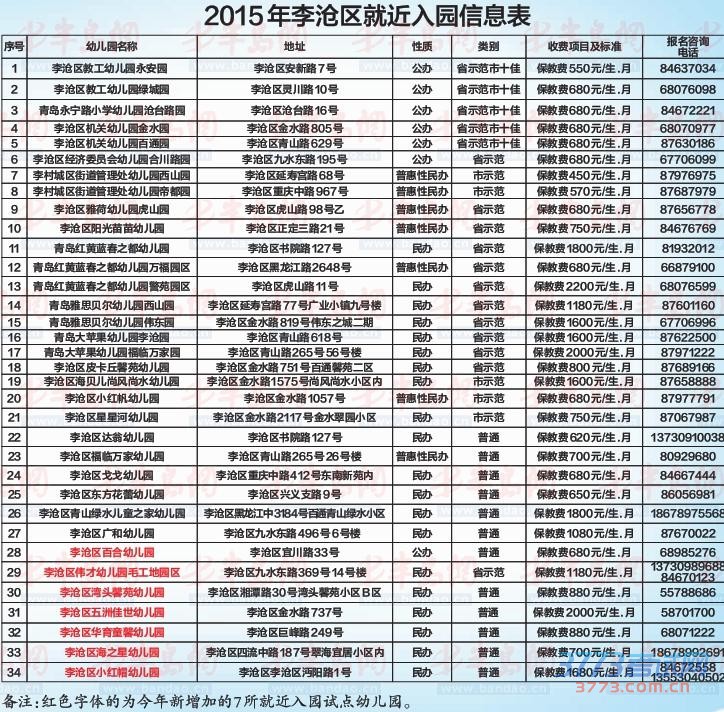 2015青岛幼儿园招生方案公布 市区90所幼儿园