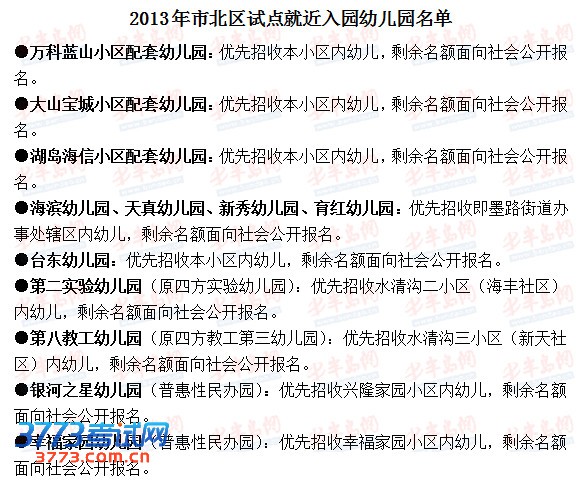 2013青岛市北区就近入园幼儿园名单报名时间