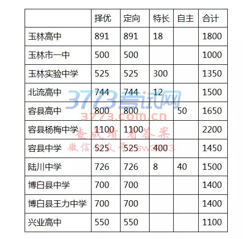 玉林市2018年普通高中招生计划情况如下↓↓↓2018年全市普通高中招生计划为48020人,比去年(46510人)增加1510人。其中,全市11所自治区示范性普通高中今年招生计划为16350人,比去年增加2170人。