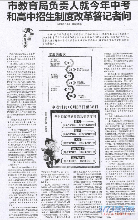 榆林市教育局2015中考高中招生制度改革答记者问