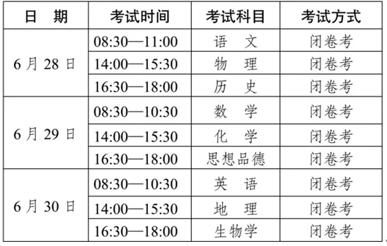 2016云南中考时间6月28日-6月30日