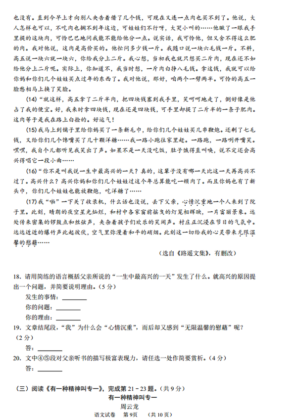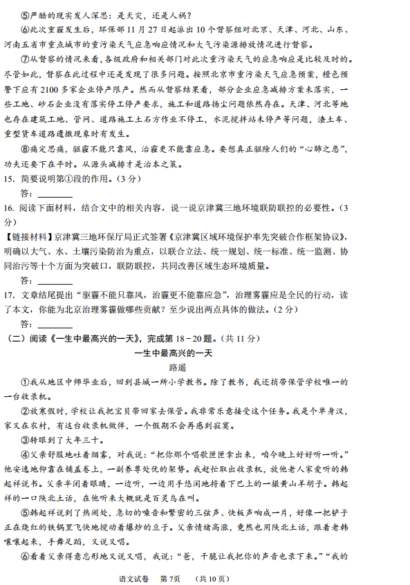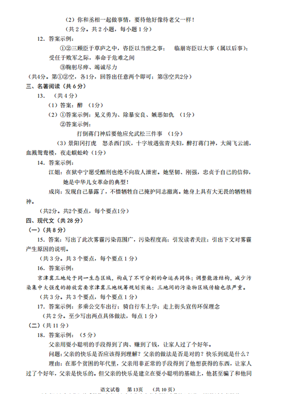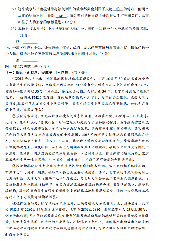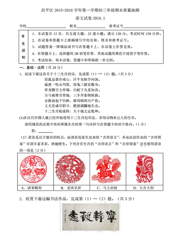 2016年1月13北京市将迎来了初三期末考试,小编第一时间公布昌平2016上学期初三期末考语文试题及答案