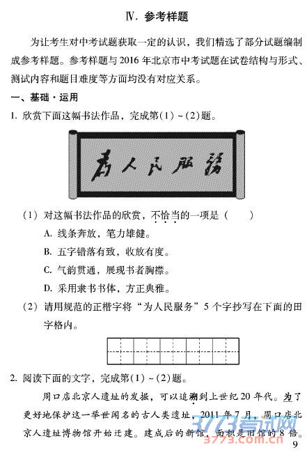 2016北京中考考试说明已经发布,下面是参考样题(基础运用)。